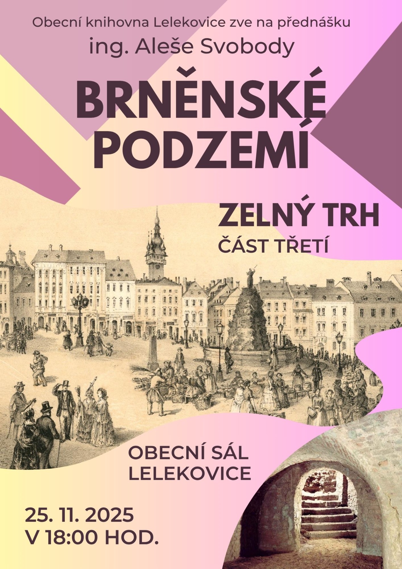 Obecní knihovna Lelekovice zve na další přednášku ing. Aleše Svobody. Opět se podíváme pod Zelný trh a prozkoumáme další skrytá místa.