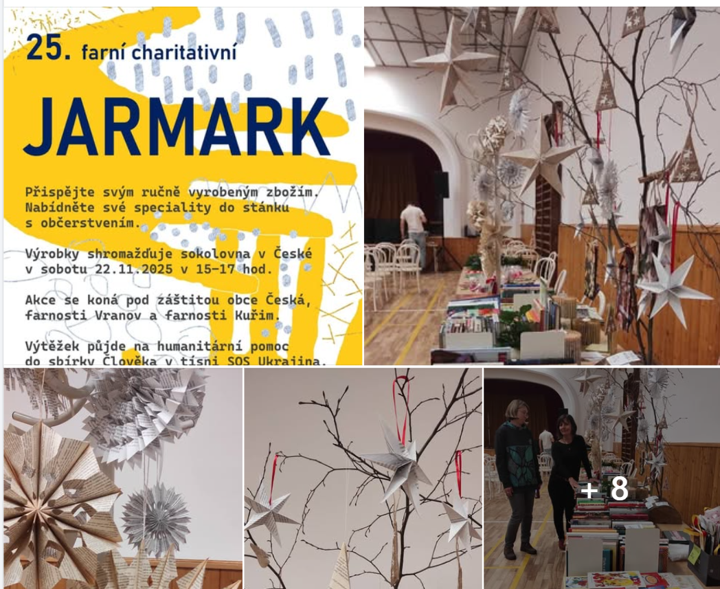 Výtěžek charitativního jarmarku 2025 v České ve výši 127 434 byl věnován na humanitární pomoc Člověk v tísni SOS Ukrajina. Společný stánek knihovny Lelekovice a knihovny Česká k výtěžku přispěl částkou 6100,- Kč. Děkujeme, že jste přišli, koupili si knihy a výrobny z papíru a přispěli jste na správnou věc.